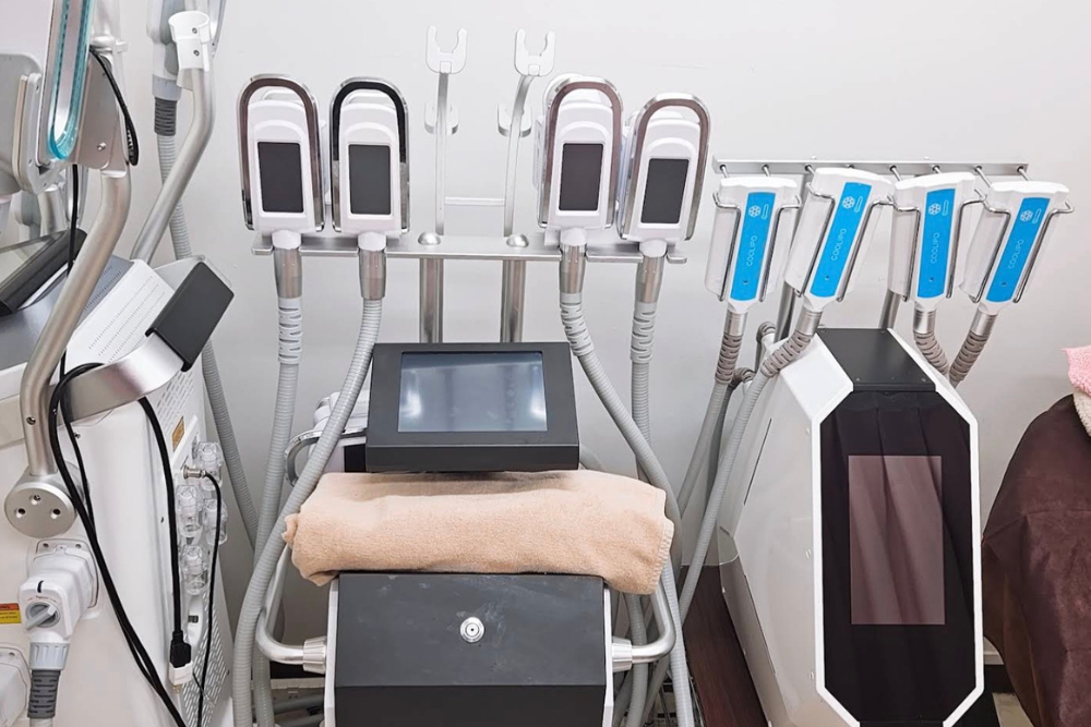 従来の脂肪冷却は2面なのに対し、当サロンでは最新機器を使用しており、5面全てに冷却する鉄板が入っているため、ムラなく施術が行えます。